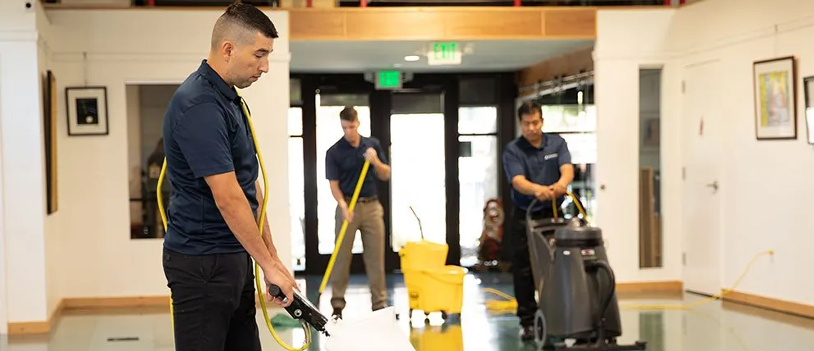 • Gebäudereinigung: Reinigung von Böden, Fenstern und Fassaden.